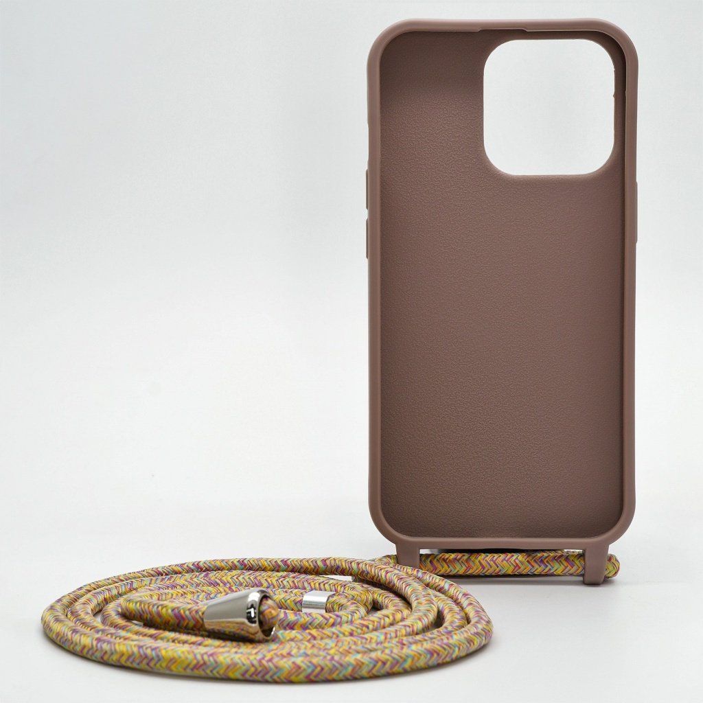 Kryt na iPhone 13 Pro Max so šnúrkou pastelovo hnedý