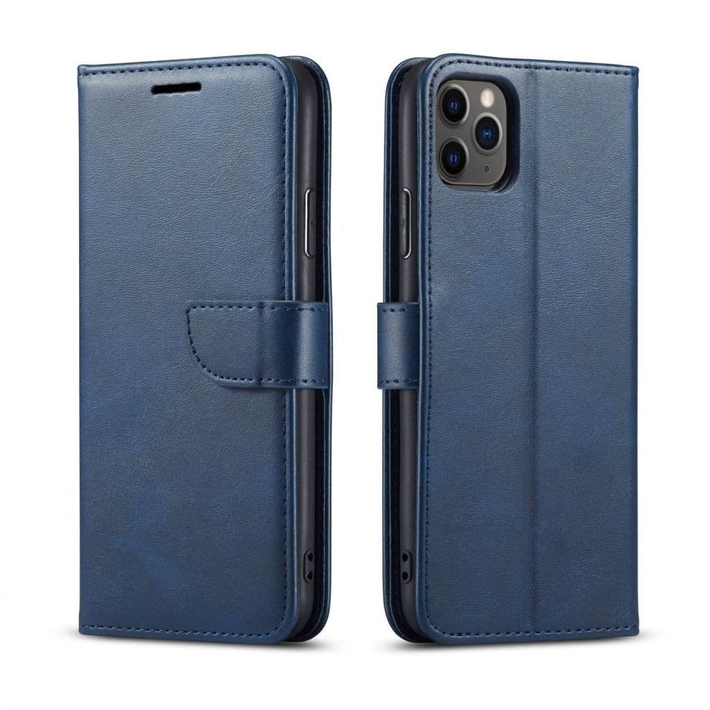 Obal na iPhone 12 modrý. Flipové, peňaženkové puzdro, potrebné výrezy otvorov pre konektory, materiál TPU a umelá koža, priestor pre kreditné karty, zatváranie na magnet, ochrana displeja proti poškriabaniu.