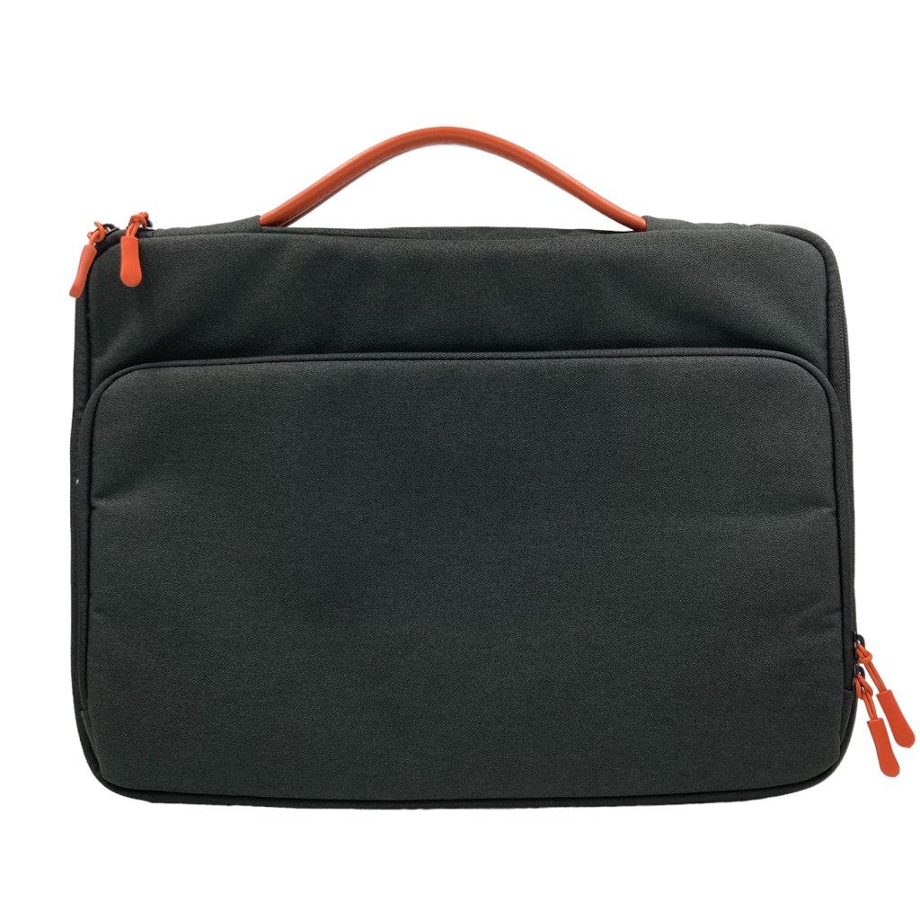 Taška pre laptop a MacBook do veľkosti 13" čiernej farby, vnútorné rozmery, vyrobená z kvalitného odolného nylonu, elegantný vzhľad tašky podčiarkuje pohodlná rukoväť zakončená ekologickou kožou, taška má dve priehradky uzatvárateľné zipsom, predné vrecko umožňuje prenášať praktické príslušenstvo